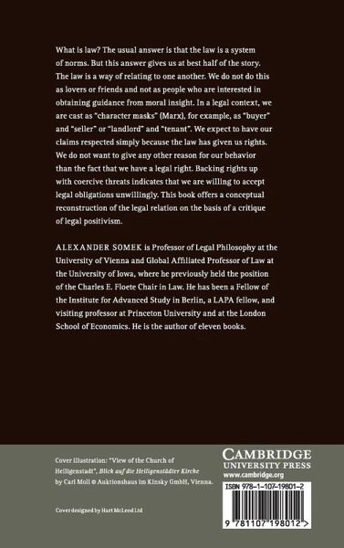 What is law? The usual answer is that the law is a system of norms. But this answer gives us at best half of the story. The law is a way of relating to one another. We do not do this as lovers or friends and not as people who are interested in obtaining guidance from moral insight. In a legal context, we are cast as 'character masks' (Marx), for example, as 'buyer' and 'seller' or 'landlord' and 'tenant'. We expect to have our claims respected simply because the law has given us rights. We do not want to give any other reason for our behavior than the fact that we have a legal right. Backing rights up with coercive threats indicates that we are willing to accept legal obligations unwillingly. This book offers a conceptual reconstruction of the legal relation on the basis of a critique of legal positivism.