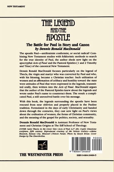 The apostle Paul-- antifeminist conformist, or social radical? Combining New Testament studies with folkloristic methods to search for the true identity of Paul, the author sheds new light on the apocryphal "Acts of Paul" and the Pastoral Epistles (1 and 2 Timothy and Titus) of the canonical New Testament. Dennis Ronald MacDonald focuses particularly on the legend of Thecla, the virgin and martyr who was converted by Paul and who, with his blessing, became a Christian teacher. Such utilization of women and an affirmation of celibacy and hostility toward the state were attitudes of Paul that were expressed in the legends, transmitted orally, then written into the "Acts of Paul". MacDonald argues that the author of the Pastoral Epistles knew about the legends and wrote under Paul's name to counteract them. The result: a complicated Paul, a still unresolved battle over his message. With this book, the legends surrounding the apostle have been rescued from near oblivion and properly placed in the Pauline tradition. Formulated in the days of early Christianity and handed down through the centuries, they cast new light on Paul's views about the ordination of women, the forms of Christian community, and the meaning of the gospel for politics, society, and sexuality.