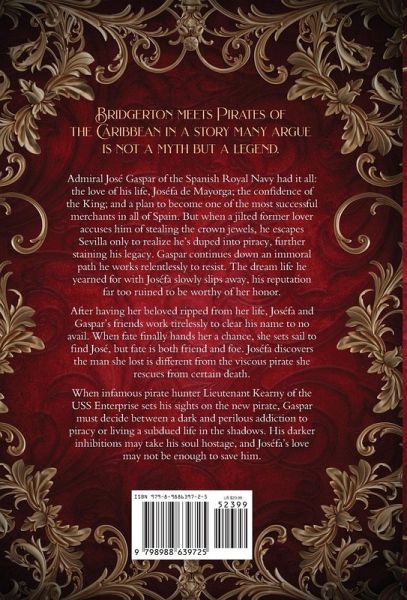 Bridgerton meets Pirates of the Caribbean in a story many argue is not a myth but a legend. Admiral José Gaspar of the Spanish Royal Navy had it all: the love of his life, Joséfa de Mayorga; the confidence of the King; and a plan to become one of the most successful merchants in all of Spain. But when a jilted former lover accuses him of stealing the crown jewels, he escapes Sevilla only to realize he's duped into piracy, further staining his legacy. Gaspar continues down an immoral path he works relentlessly to resist. The dream life he yearned for with Joséfa slowly slips away, his reputation far too ruined to be worthy of her honor. After having her beloved ripped from her life, Joséfa and Gaspar's friends work tirelessly to clear his name to no avail. When fate finally hands her a chance, she sets sail to find José, but fate is both friend and foe. Joséfa discovers the man she lost is different from the viscous pirate she rescues from certain death. When infamous pirate hunter Lieutenant Kearny of the USS Enterprise sets his sights on the new pirate, Gaspar must decide between a dark and perilous addiction to piracy or living a subdued life in the shadows. His darker inhibitions may take his soul hostage, and Joséfa's love may not be enough to save him.
