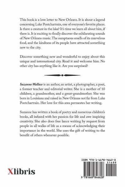 This book is a love letter to New Orleans. It is about a legend concerning Lake Pontchartrain, one of everyone's favorite places. Is there a creature in the lake? It's time we learn all about him, if there is. It is exciting to finally discover the exhilarating sounds of New Orleans music. The sumptuous smells of its marvelous food, and the kindness of its people have attracted something new to the city. Discover something new and wonderful to enjoy about this unique and international city. Read it and welcome him. No other city has anything like it. Are you surprised?