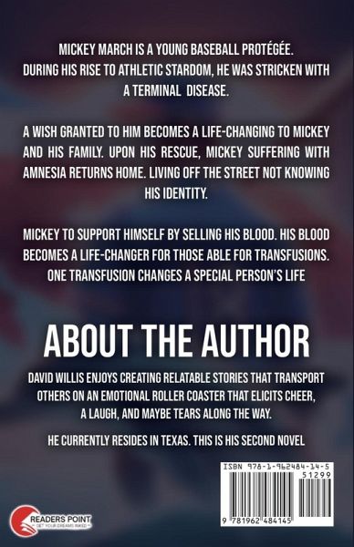 Mickey March is a young baseball protégée. During his rise to athletic stardom, he was stricken with a terminal disease. A wish granted to him becomes a life-changing to Mickey and his family. Upon his rescue, Mickey suffering with amnesia returns home. Living off the street not knowing his identity. Mickey to support himself by selling his blood. His blood becomes a life-changer for those able for transfusions. One transfusion changes a special person's life.