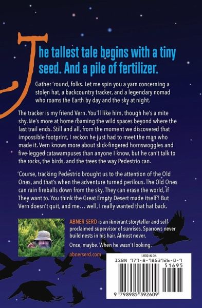 Gather 'round, folks! Let me spin you a yarn concerning a stolen hat, a backcountry tracker, and a legendary nomad who wanders the Earth by day and the sky at night. The tracker is my friend Vern. You'll like him, though he's a mite shy. Tell you true, I don't recall the last time he showed his face Town Side. He's more at home roaming the wild spaces beyond where the last trail ends. Still and all, from the moment we discovered that impossible footprint out there among the swaddle bushes, I reckon Vern just had to meet the man who made it. Vern knows more about slick-fingered hornswoggles and five-legged catawampuses than anyone I know, but he can't talk to the rocks, the birds, and the trees the way Pedestrio can. 'Course, tracking Pedestrio brought us to the attention of the Old Ones, and that's when the adventure turned perilous. The Old Ones can rain fireballs down from the sky. They can erase the world, if They want to. You think the Great Empty Desert made itself? But Vern doesn't quit, and me... well, I really wanted that hat back. Yes indeed, Wild Side is a land full of stories ... but beware the tales that unexpectedly come to life.