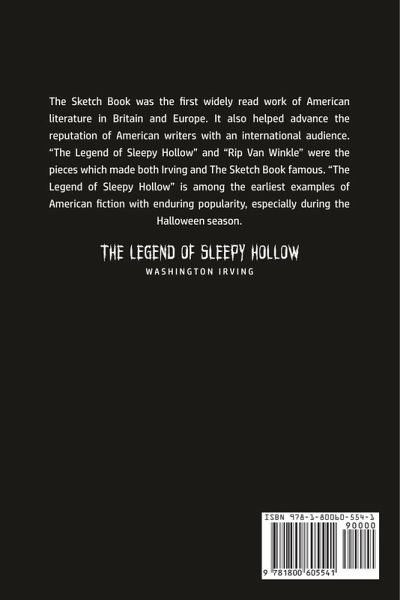 Do you want to read The Legend of Sleepy Hollow? If so then keep reading... The Sketch Book was the first widely read work of American literature in Britain and Europe. It also helped advance the reputation of American writers with an international audience. "The Legend of Sleepy Hollow" and "Rip Van Winkle" were the pieces which made both Irving and The Sketch Book famous. "The Legend of Sleepy Hollow" is among the earliest examples of American fiction with enduring popularity, especially during the Halloween season. What are you waiting for The Legend of Sleepy Hollow is one click away, select the "Buy Now" button in the top right corner NOW!