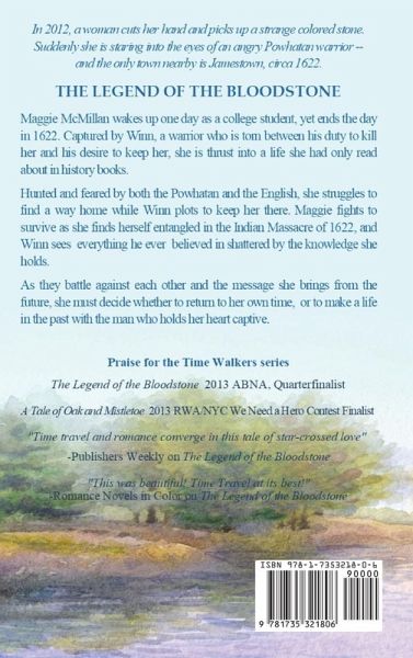 "Perhaps I will cut your throat as you tried to cut mine. Will I still want to touch you when your blood is on my hands? Or will it chase your ghost from my thoughts?" He held his hands out and considered them for a moment, shaking his head. "I think not. I think still you would haunt me." TIME WALKERS Maggie is a modern day woman with all her flaws, thrust back into a time when men were carving out the history of America. She has just enough knowledge of the past to know trouble is coming, yet soon she is kicking herself for not paying better attention in history class. When she is captured by Winn, a warrior who is torn between his duty to kill her and his desire to keep her, she must adapt to a life she had only read about in history books. Winn is a seventeenth century Paspahegh warrior, born in a time before the English settlers arrived on the shores of Tsenacomoco. He has learned the ways of the English and uses his knowledge to ensure the survival of his people, but when he finds a wounded woman in the woods his loyalty is put to the ultimate test. Hunted and feared by both the Powhatan and the English, Maggie struggles to find a way home while Winn plots to keep her there. Maggie fights to survive as she finds herself entangled in the Massacre of 1622, and Winn sees everything he ever believed in shattered by the knowledge she holds. With ties to both the past and future, their lives unfold among the stirrings of a new nation. Maggie and Winn risk everything to survive as the once powerful Powhatan Nation crumbles and the English build a country from the ashes. Praise for the Time Walkers series: The Legend of the Bloodstone - 2013 Amazon Breakthrough Novel Award, Quarterfinalist A Tale of Oak and Mistletoe - 2013 RWA/NYC We Need a Hero Contest, Finalist "Time travel and romance converge in this tale of star-crossed love" - Publishers Weekly on The Legend of the Bloodstone "This was beautiful! Time Travel at its best!"- Romance Novels in Color "Absolutely consuming" - Amazon reviewer "I love this series. I didn't want it to end!" - Amazon Reviewer "I can easily see where this story could be a fantastic movie." - Amazon Reviewer "My complaint with this book is I couldn't stop reading this one and the next one in the series which resulted in late nights and tired mornings!!" - Amazon Reviewer "An epic historical saga in brilliant cinematic technicolor" - Amazon reviewer