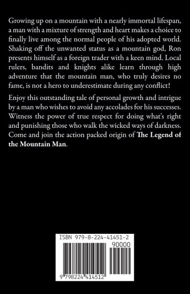 Growing up on a mountain with a nearly immortal lifespan, a man with a mixture of strength and heart makes a choice to finally live among the normal people of his adopted world. Shaking off the unwanted status as a mountain god, Ron presents himself as a foreign trader with a keen mind. Local rulers, bandits and knights alike learn through high adventure that the mountain man, who truly desires no fame, is not a hero to underestimate during any conflict! Enjoy this outstanding tale of personal growth and intrigue by a man who wishes to avoid any accolades for his successes. Witness the power of true respect for doing what's right and punishing those who walk the wicked ways of darkness. Come and join the action packed origin of The Legend of the Mountain Man.