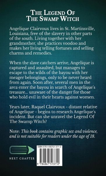 This book contains graphic sex and violence, and is not suitable for readers under the age of 18. Angelique Clairvoux lives in St. Martinsville, Louisiana, free of the slavery in other parts of the south. Living together with her grandmother, she practices voodoo and makes her living telling fortunes and selling charms and remedies. When the slave catchers arrive, Angelique is captured and assaulted, but manages to escape to the wilds of the bayou with her meager belongings, only to be never heard from again. Soon after, several men in the area enter the bayou in search of Angelique's treasure... unaware of the danger for those who hold evil in their hearts against women. Years later, Raquel Clairvoux - distant relative of Angelique - begins to research Angelique's incident. But can she unravel the Legend Of The Swamp Witch?