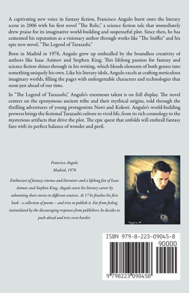 A captivating new voice in fantasy fiction, Francisco Angulo burst onto the literary scene in 2006 with his first novel "The Relic," a science fiction tale that immediately drew praise for its imaginative world-building and suspenseful plot. Since then, he has cemented his reputation as a visionary author through works like "The Sniffer" and his epic new novel, "The Legend of Tarazashi." Born in Madrid in 1976, Angulo grew up enthralled by the boundless creativity of authors like Isaac Asimov and Stephen King. This lifelong passion for fantasy and science fiction shines through in his writing, which blends elements of both genres into something uniquely his own. Like his literary idols, Angulo excels at crafting meticulous imaginary worlds, filling the pages with unforgettable characters and technologies that seem just ahead of our time. In "The Legend of Tarazashi," Angulo's enormous talent is on full display. The novel centers on the eponymous ancient tribe and their mythical origins, told through the thrilling adventures of young protagonists Nawi and Kokori. Angulo's world-building prowess brings the fictional Tarazashi culture to vivid life, from its rich cosmology to the mysterious artifacts that drive the plot. The epic quest that unfolds will enthrall fantasy fans with its perfect balance of wonder and peril. Critics have showered "The Legend of Tarazashi" with praise, calling it " spellbinding" (The Guardian) and "a spectacular new addition to the fantasy pantheon" (Los Angeles Times). Like the best works of fantasy, Angulo's novel blends pulse-pounding adventure with universal themes that resonate deeply. It is truly a gift for lovers of speculative fiction everywhere. With his endless inventiveness and insight into the human heart, Francisco Angulo establishes himself as the next giant of the genre. The Legend of the Tarazashi My people had always lived in harmony with nature, for the earth was our mother. Our lands stretched north to the great mountains and south to the great river. That was all we knew, none of us ever crossed beyond. My grandfather tells me stories of our people when we sit by the warmth of the campfire at night. He recounted that our ancestors had to cross the snowy peaks of the high mountains, as they were nomads who wandered without a fixed course, living off what they found along the way. Upon arriving at this beautiful place, a dream revealed to them how to cultivate the land. Now we had more than enough food and it was unnecessary to continue wandering. Our diet was mainly vegetarian, only in times of scarcity did we resort to hunting. All the living beings of the forest were part of our family, so we tried to intervene as little as possible, letting Mother Nature do her work. When I was a child we used to play climbing trees; although it was a children's game we also took the opportunity to collect some bird eggs, always leaving at least two in each nest so that life would not be affected. We had many legends, stories that my grandfather told me. Tales of the wolf king Nazrat or a lonely animal turned demigod.