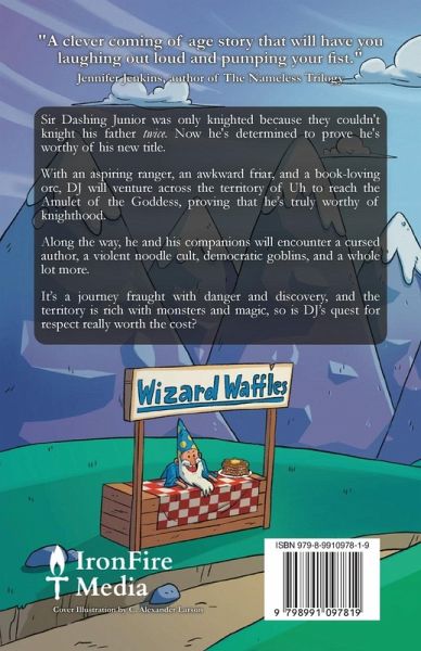 Sir Dashing Junior was only knighted because they couldn't knight his father twice. Now he's determined to prove he's worthy of his new title. With an aspiring ranger, an awkward friar, and a book-loving orc, DJ will venture across the territory of Uh to reach the Amulet of the Goddess, proving that he's truly worthy of knighthood. Along the way, he and his companions will encounter a cursed author, a violent noodle cult, democratic goblins, and a whole lot more. It's a journey fraught with danger and discovery, and the territory is rich with monsters and magic, so is DJ's quest for respect really worth the cost?