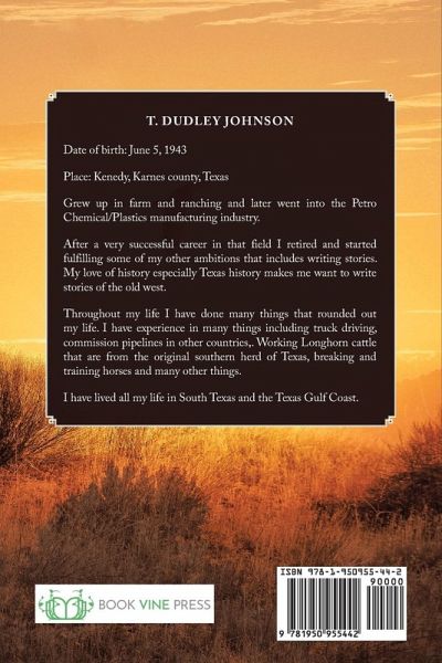 Grew up in farm and ranching and later went into the Petro Chemical/Plastics manufacturing industry. After a very successful career in that field I retired and started fulfilling some of my other ambitions that includes writing stories. My love of history especially Texas history makes me want to write stories of the old west. Throughout my life I have done many things that rounded out my life. I have experience in many things including truck driving, commission pipelines in other countries,. Working Longhorn cattle that are from the original southern herd of Texas, breaking and training horses and many other things. I have lived all my life in South Texas and the Texas Gulf Coast.
