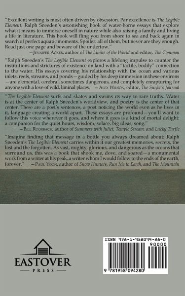 "Imagine finding that message in a bottle you always dreamed about." So writes Paul Yoon, author of Snow Hunters, about poet and essayist Ralph Sneeden's new book The Legible Element. Although a memoir at its core, The Legible Element is much more: the book gathers lyrical essays into chapters, using prose and poetry as facets of the same aqueous gem. With a personal immersion in literature, visual art, film, and music, Sneeden establishes a nonfiction hybrid on the border between the academic and the personal. The collection's narratives about surfing, sailing, fishing, scuba diving, and swimming are earthly dispatches from an ongoing voyage fueled by joy, longing, loss, and humor. The Legible Element is a book about places, its insights and descriptions spurred by the challenge of distinguishing the personalities of different bodies of water through experience while also paying tribute to the coasts that cradle and define them. The collection's regional touchstones are in New England and California, but as Jennifer Acker, author of The Limits of the World and editor of The Common, puts it, "This book will fling you from shore to sea and back again in search of perfect aquatic moments." Water provides the language of the essays, functioning as both a lens and mirror for the author's exploration of the act and outcomes of writing itself. As he says in the preface, "...it's writing that ultimately needs to rip its own temporary swath, churn the surface of memory into something that seems more permanent." Bill Roorbach, author of Summers with Juliet, Temple Stream, and Lucky Turtle, writes, "These are a poet's sentences, a poet noticing the world even as he lives in it, language creating a world apart. These essays are profound-you'll want to follow this voice wherever it goes." The Legible Element will have you wallowing, floundering, and then swimming happily for your life off the shore of your own preoccupations before you even realize you're adrift.
