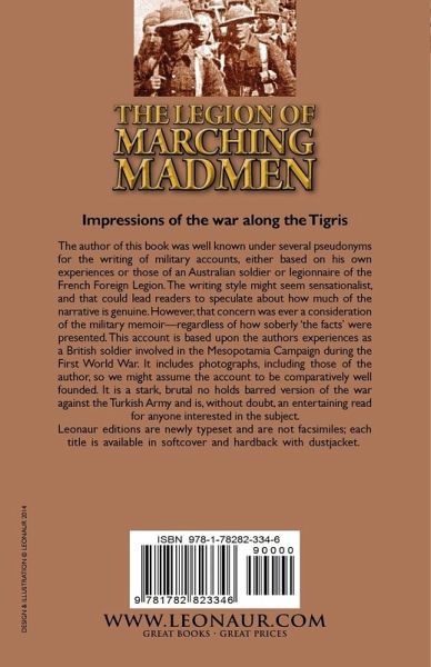 Impressions of the war along the Tigris The author of this book was well known under several pseudonyms for the writing of military accounts, either based on his own experiences or those of an Australian soldier or legionnaire of the French Foreign Legion. The writing style might seem sensationalist, and that could lead readers to speculate about how much of the narrative is genuine. However, that concern was ever a consideration of the military memoir-regardless of how soberly 'the facts' were presented. This account is based upon the authors experiences as a British soldier involved in the Mesopotamia Campaign during the First World War. It includes photographs, including those of the author, so we might assume the account to be comparatively well founded. It is a stark, brutal no holds barred version of the war against the Turkish Army and is, without doubt, an entertaining read for anyone interested in the subject. Leonaur editions are newly typeset and are not facsimiles; each title is available in softcover and hardback with dustjacket.