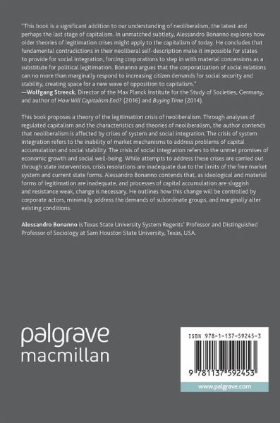 This book proposes a theory of the legitimation crisis of neoliberalism. Through analyses of the legitimation crisis of regulated capitalism and the characteristics and theories of neoliberalism, the author contends that neoliberalism is affected by crises of system and social integration. The crisis of system integration refers to the inability of market mechanisms to address problems of capital accumulation and social stability. The crisis of social integration refers to the unmet promises of economic growth and social well-being. While attempts to address these crises are carried out through state intervention, crisis resolutions are inadequate due to the limits of the free market system and current state forms. Alessandro Bonanno contends that, as ideological and material forms of legitimation are inadequate, and processes of capital accumulation are sluggish and resistance weak, change is necessary. He outlines how this change will be controlled by corporate actors, minimally address the demands of subordinate groups, and marginally alter existing conditions.