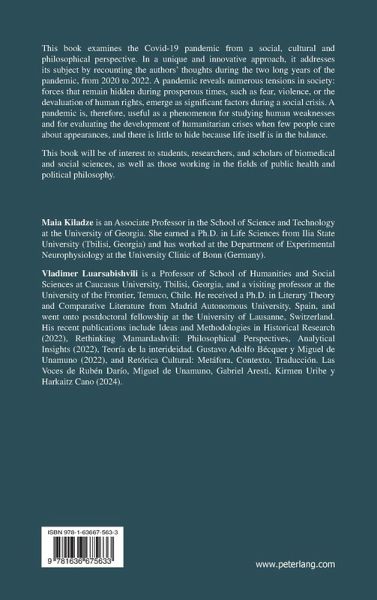 This book examines the Covid-19 pandemic from a social, cultural and philosophical perspective. In a unique and innovative approach, it addresses its subject by recounting the authors' thoughts during the two long years of the pandemic, from 2020 to 2022. A pandemic reveals numerous tensions in society: forces that remain hidden during prosperous times, such as fear, violence, or the devaluation of human rights, emerge as significant factors during a social crisis. A pandemic is, therefore, useful as a phenomenon for studying human weaknesses and for evaluating the development of humanitarian crises when few people care about appearances, and there is little to hide because life itself is in the balance. This book will be of interest to students, researchers, and scholars of biomedical and social sciences, as well as those working in the fields of public health and political philosophy.