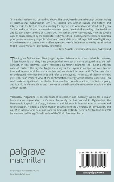 "I rarely learned so much by reading a book. This book, based upon a thorough understanding of international humanitarian law (IHL), Islamic law, Afghan culture, and history and interviews in the field, is essential reading for anyone who wants to understand the Afghan Taliban and how IHL matters even for such an armed group heavily influenced by tribal traditions and its own understanding of Islamic law. The author of this book shows convincingly how the Layeha code of conduct issued by the Taliban for its fighters tries but beyond rhetoric and common principles also in many respects fails to accommodate external expectations of legitimacy of the international community based upon IHL to the legitimacy requirements by their own internal constituency based upon the old rhetoric of Jihad against invading non-believers. Whether the result of a genuine dilemma or mere strategy, this double-pronged approach conceptualized as a "one-way mirror" model, the policy implications of which are shown according to realist, institutionalist, and constructivist approaches, must be taken into account when trying to understand and dealing with the Taliban and in many respects with other armed groups. It offers a perspective of a little more humanity in a situation which is as all wars are profoundly inhumane.' - Marco Sassòli, University of Geneva, Switzerland