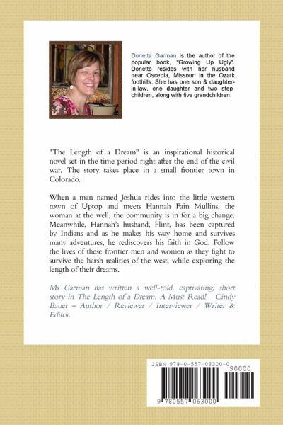""The Length of a Dream"" is an inspirational historical novel set in the time period right after the end of the Civil War. The story takes place in a small frontier town in Colorado. When a man named Joshua rides into the little western town of Uptop and meets Hannah Fain Mullins, the woman at the well, the community is in for a big change. Meanwhile, Hannah's husband, Flint, has been captured by Indians and as he makes his way home and survives many adventures, he rediscovers his faith in God. Follow the lives of these frontier men and women as they fight to survive the harsh realities of the west, while exploring the length of their dreams.