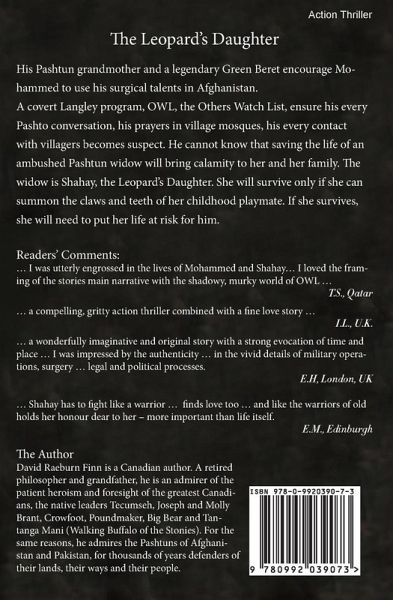 You've read about the Afghan war. You're curious, not about America's motives, but about the enemies it has fought. Didn't they understand America's might? The United States and its allies have made war against Pashtuns/Pukhtuns in Afghanistan and Pakistan for twenty years. Now, in 2021, what had been clear to Pashtuns since 2001 has been acknowledged by the US: the US and its allies have lost. The Leopard's Daughter, A Pukhtun Story speaks in two voices: that of a Denver Special Forces medic of Pashtun descent, and that of Pashtuns of Afghanistan and Pakistan. Synopsis: The Leopard's Daughter: A Pukhtun Story Mohammed, a skilled, poltically naïve Denver surgeon of Pashtun descent joins US Special Forces as a front line medic at a secret base in Kunar, Afghanistan. His Muslim faith and background already have him on a secret CIA watch list dubbed OWL (Others Watch List). Alerted by OWL, his Afghan base commander's suspicions become deranged as Mohammed converses and prays with, then physically defends Afghan civilian villagers against murderous company soldiers. Mohammed survives a cross border ambush unaware it targetted him. A passing Pashtun family is swept up and fights alongside him. His surgery saves Shahay, a knife wielding widow of the family who's finished two ambushers before suffering an arterial slash. Shahay's brother invites Mohammed to their Bajaur home to oversee her recovery. Welcomed as an esteemed guest, he is drawn to her and her family. His visit unknowingly sets in motion a CIA private contractor operation aimed at discovering Mohammed's true allegiance. The operatives' task, to discover Mohammed's motives, brings horror to her family and gruesome deaths to Bajaur. The deaths will not be forgiven ...