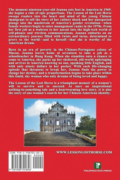 The moment nineteen-year-old Joanna sets foot in America in 1969, she begins a ride of epic proportions. The Lesson of the Lost Horse sweeps readers into the heart and mind of the young Chinese immigrant to tell the story of her culture shock and her plunge into the maelstrom of America's gender revolution-when female workers begin to enter management ranks in the 1970s. From her first job as a waitress to her ascent into the high-tech world of cell-phones and wireless communications, Joanna embarks on an extraordinary journey filled with unexpected twists and turns, determined to prove to the world-and to herself-that she is worthy of the American dream. Born in an era of poverty in the Chinese-Portuguese colony of Macau, Joanna leaves home at seventeen to take a job as a schoolteacher in Hong Kong. When she stumbles onto a chance to come to America, she packs up her sheltered, old-world upbringing and arrives in America knowing no one, speaking little English, and with only ninety dollars in her pocket. With each life-changing episode that threatens to break her, Joanna finds the power to change her destiny, and a transformation begins to take place within this timid, shy woman who only dreams of being loved and happy. The Lesson of the Lost Horse is a triumphant memoir of a woman's will to survive and to succeed. At once an inspirational nothing-to-something tale and a heartwarming love story, it is also the story of one woman's search for her Chinese-American identity.