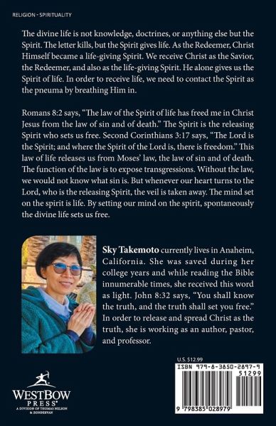 > Romans 8:2 says, "The law of the Spirit of life has freed me in Christ Jesus from the law of sin and of death." The Spirit is the releasing Spirit who sets us free. Second Corinthians 3:17 says, "The Lord is the Spirit; and where the Spirit of the Lord is, there is freedom." This law of life releases us from Moses' law, the law of sin and of death. The function of the law is to expose transgressions. Without the law, we would not know what sin is. But whenever our heart turns to the Lord, who is the releasing Spirit, the veil is taken away. The mind set on the spirit is life. By setting our mind on the spirit, spontaneously the divine life sets us free.