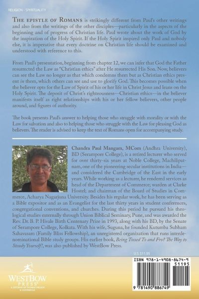The epistle of Romans is strikingly different from Paul's other writings and also from the writings of the other disciples-particularly in the aspects of the beginning and of progress of Christian life. Paul wrote about the work of God by the inspiration of the Holy Spirit. If the Holy Spirit inspired only Paul and nobody else, it is imperative that every doctrine on Christian life should be examined and understood with reference to this. From Paul's presentation, beginning from chapter 12, we can infer that God the Father resurrected the Law as "Christian ethics" after He resurrected His Son. Now, believers can see the Law no longer as that which condemns them but as Christian ethics present in them, which others can see and use to glorify God. This becomes possible when the believer opts for the Law of Spirit of his or her life in Christ Jesus and leans on the Holy Spirit. The deposit of Christ's righteousness-Christian ethics-in the believer manifests itself as right relationships with his or her fellow believers, other people around, and figures of authority. The book presents Paul's answer to helping those who struggle with morality or with the Law for salvation and also to helping those who struggle with the Law for pleasing God as believers. The reader is advised to keep the text of Romans open for accompanying study.