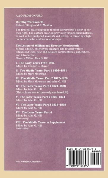 "I should detest," wrote Dorothy Wordsworth, "the idea of setting myself up as an author." Protesting to Lady Beaumont she explained "I have not the powers which Coleridge thinks I have--I know it." Despite her self-deprecatory words, however, the reader of Dorothy Wordsworth's letters will discover a skill with language and a power of description that rivals even the poetry of her more famous brother. In this selection, Alan G. Hill offers seventy complete letters that together provide a fascinating portrait of the writer and her surroundings. Spontaneous, intimate, and lively, they constitute a life of Dorothy Wordsworth in her own words, following her from youth to the onset of her last tragic illness. In between, we meet a remarkable group of people, for no other observer was so close to Wordsworth, Coleridge, and their circle, shared so completely their feelings and aims, and had such an eye for the landscape that inspired them. To have brought them so vividly before our eyes is surely one of Dorothy Wordsworth's greatest and most enduring achievements.