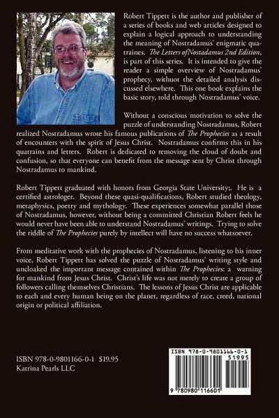 Every adult should read this book. It takes the enigmatic letters that Nostradamus wrote, explaining The Prophecies, and transforms them into a very understandable explanation of warning that must be known, if not heeded. Written in Nostradamus' voice, the author shows that Nostradamus was doing the bidding of Jesus Christ. This book makes some bold claims, based on the author's research and findings found detailed in another publication. The how-to's and why's will not be found in this book; but, enough is provided before the letters are presented that makes it become certainly a viable interpretations of Nostradamus' actual text. The text of Nostradamus is separated from the text of the author, by bold type, which makes seeing Nostradamus' text appear when you hold the book at arm's length. At first, the bold type seems unlikely to yield the author's additional text, but after rereading (sometimes more than once) it becomes clearer how simple combinations of words can have multiple meanings.