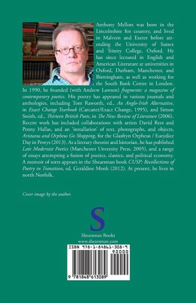 Anthony Mellors (1962-2023) was born in the fen country. He read English at the University of Sussex and Trinity College, Oxford, and lectured in that subject at Oxford, Durham, The Manchester Metropolitan, and Birmingham City universities. In 1990, he co-founded fragmente: a magazine of contemporary poetics. He edited (with Fiona Robertson) Stephen Crane's The Red Badge of Courage for OUP and was the author of Late Modernist Poetics from Pound to Prynne (Manchester University Press, 2005). Later essays include 'Courtesy Winter', in Geraldine Monk, ed., Cusp: Recollections of Poetry in Transition (Shearsman, 2012), 'Autopsia: Olson, Themis, Pausanias', in Modernism/Modernity, 'Refusing Impact: Aesthetic Economy and Given Time', in SubStance, and 'Disabled Poetry', in Textual Practice. His poetry has appeared in various journals and anthologies, including Tom Raworth, ed., 'An Anglo-Irish Alternative', Exact Change Yearbook (Carcanet/Exact Change, 1995), So also ist das (Haymon-Verlag, 2002), and Simon Smith, ed., 'Thirteen British Poets', in The New Review of Literature (2006).