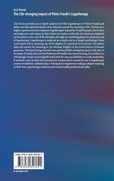This book provides an in-depth analysis of of the logotherapy of Viktor Frankl and delves into the spiritual depths of an inherent search for meaning in life. Written by a highly experienced and competent logotherapist trained by Frankl himself, this book is excitingly new and unique in that it takes the reader, in the role of a client accompanied by the author in the role of the therapist, through the unfolding phase-by-phase process of logotherapy. Logotherapy is explored as a depth and as a height psychology. From a provoked will to meaning out of the depths of a spiritual unconscious, the author takes the search for meaning to the ultimate heights in the achievement of human greatness. This book brings Frankl's own profound life's orientation back to life and, in its reader-friendly style, has the freshness of Frankl's own way of writing. It is written in a refreshingly simple and straightforward style for easy accessibility to a wide readership. It includes cases studies andexercises for readers and is meant for use in logotherapy courses worldwide. Additionally, it will appeal to laypersons seeking a deeper meaning to their lives, psychology students and mental health professionals alike.
