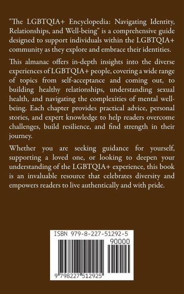 "The LGBTQIA+ Encyclopedia: Navigating Identity, Relationships, and Well-being" is a comprehensive guide designed to support individuals within the LGBTQIA+ community as they explore and embrace their identities. This almanac offers in-depth insights into the diverse experiences of LGBTQIA+ people, covering a wide range of topics from self-acceptance and coming out, to building healthy relationships, understanding sexual health, and navigating the complexities of mental well-being. Each chapter provides practical advice, personal stories, and expert knowledge to help readers overcome challenges, build resilience, and find strength in their journey. Whether you are seeking guidance for yourself, supporting a loved one, or looking to deepen your understanding of the LGBTQIA+ experience, this book is an invaluable resource that celebrates diversity and empowers readers to live authentically and with pride.