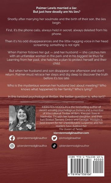 Palmer Lewis married a liar. But just how deadly are his lies? Shortly after marrying her soulmate and the birth of their son, the lies begin. First, it's the phone calls, always held in secret, always deleted from his phone. Then it's his odd disappearances and the little nagging voice in her head screaming: something is not right. When Palmer follows her gut -- and her husband -- she catches him with an unfamiliar woman in the park and in his biggest lie thus far. Learning from her past, she hatches a plan to protect herself and their child. But when her husband and son disappear one afternoon and don't return, Palmer must retrace her steps and dig deep to discover the truth before it's too late. Who is the mysterious woman her husband lied about meeting? Who knows what happened to her family? Who's lying? In this twisted psychological thriller, the better question is, who isn't?
