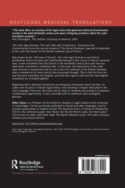 The Liber legis Scaniae: The Latin Text with Introduction, Translation and Commentaries forms the second volume of The Danish Medieval Laws and is dedicated to the Latin text based on the Danish medieval Law of Scania. Also known as the "Old laws of Scania", the Liber legis Scaniae is ascribed to Archbishop Anders Sunesen and traditionally belongs to the corpus of Danish medieval laws. It was translated from Old Danish in the thirteenth century and until now has often been considered a subsidiary text. In this book, the importance of the Liber legis Scaniae is reexamined and its role in the first redaction of the Danish medieval laws is revealed as far more central than previously thought. This is the first time the text has been translated into English, and both the original Latin and the new English translation are included together. Beginning with a detailed introduction providing key information about the text, its author and its place in Danish legal history, and including a chapter dedicated to the Latin language of the text, this book will be ideal for students and scholars of medieval Scandinavian legal history. It also concludes with an extensive Latin-to-English glossary.