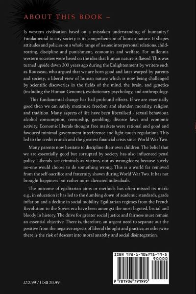 Is western civilisation based on a mistaken understanding of humanity? Fundamental to any society is its comprehension of human nature. It shapes attitudes and policies on a whole range of issues: interpersonal relations, child-rearing, discipline and punishment, economics and welfare. For millennia western societies were based on the idea that human nature is flawed. This was turned upside down 300 years ago during the Enlightenment by writers such as Rousseau, who argued that we are born good and later warped by parents and society; a liberal view of human nature which is now being challenged by scientific discoveries in the fields of the mind, the brain, and genetics (including the Human Genome), evolutionary psychology, and anthropology. This fundamental change has had profound effects. If we are essentially good then we can safely maximize freedom and abandon morality, religion and tradition. Many aspects of life have been liberalised - sexual behaviour, alcohol consumption, censorship, gambling, divorce laws and economic activity. Economic liberals thought free markets were rational and good and favoured minimal government interference and light-touch regulations. This led to the credit crunch and the greatest financial crisis since World War Two. Many parents now hesitate to discipline their own children. The belief that we are essentially good but corrupted by society has also influenced penal policy. Liberals see criminals as victims, not as wrongdoers; because surely no-one would choose to do something wrong. This is a world far removed from the self-sacrifice and fraternity shown during World War Two. It has not brought happiness but rather more alienated individuals. The outcome of egalitarian aims or methods has often missed its mark: e.g., in education it has led to the dumbing down of academic standards, grade inflation and a decline in social mobility. Egalitarian regimes from the French Revolution to the Soviet era have been amongst the most bigoted, brutal and bloody in history. The drive for greater social justice and fairness must remain an essential objective. There is, therefore, an urgent need to separate out the positive from the negative aspects of liberal thought and practice, as otherwise there is the risk of descent into moral anarchy and social disintegration.