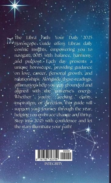 The Libra Path: Your Daily 2025 Horoscope Guide is your go-to companion for navigating the year ahead with balance, clarity, and grace. Specially crafted for Libra individuals, this comprehensive guide offers daily horoscopes, affirmations, and reflections designed to support your unique journey through 2025. Each day, you'll find detailed horoscopes tailored to the key aspects of a Libra's life, including love, relationships, career, health, and personal growth. Whether you're looking for insight into a romantic relationship, seeking professional advice, or striving for emotional balance, these daily readings will offer guidance and inspiration to help you make mindful decisions and stay aligned with the universe's energy. Highlights of the book: Daily Horoscopes: Insightful and detailed predictions for each day of the year, covering topics from personal development and career choices to love and relationships. These daily readings are designed to resonate with Libra's natural strengths of diplomacy, harmony, and fairness, while providing practical advice on overcoming challenges. Affirmations: Alongside each horoscope is a carefully selected affirmation or gratitude practice. These positive affirmations are designed to uplift and inspire, encouraging you to stay centered, motivated, and grounded in your daily life. By incorporating these into your routine, you'll harness your inner strength and embrace each day with renewed focus. Focus on Balance and Growth: As a Libra, balance is at the core of your being. This guide emphasizes the importance of maintaining harmony in all areas of life-be it relationships, work, or self-care. The horoscopes and affirmations will help you cultivate inner peace, while also encouraging personal growth and self-awareness. The Libra Path is perfect for both seasoned astrology enthusiasts and those new to daily horoscopes. Whether you use it as a tool for reflection, a source of daily inspiration, or a way to align with the cosmos, this book will provide you with the wisdom and guidance needed to thrive in 2025. Step into the new year with confidence, and let the stars illuminate your journey. This is more than just a horoscope book-it's a personal guide designed to empower Libras to live with purpose, embrace change, and create a life filled with harmony, success, and fulfillment.