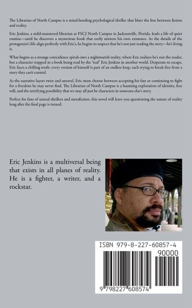 The Librarian of North Campus is a mind-bending psychological thriller that blurs the line between fiction and reality. Eric Jenkins, a mild-mannered librarian at FSCJ North Campus in Jacksonville, Florida, leads a life of quiet routine-until he discovers a mysterious book that eerily mirrors his own existence. As the details of the protagonist's life align perfectly with Eric's, he begins to suspect that he's not just reading the story-he's living it. What begins as a strange coincidence spirals into a nightmarish reality, where Eric realizes he's not the reader, but a character trapped in a book being read by the "real" Eric Jenkins in another world. Desperate to escape, Eric faces a chilling truth: every version of himself is part of an endless loop, each trying to break free from a story they can't control. As the narrative layers twist and unravel, Eric must choose between accepting his fate or continuing to fight for a freedom he may never find. The Librarian of North Campus is a haunting exploration of identity, free will, and the terrifying possibility that we may all just be characters in someone else's story. Perfect for fans of surreal thrillers and metafiction, this novel will leave you questioning the nature of reality long after the final page is turned.