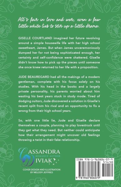 All's fair in love and war, even a few little white lies to stir up a little drama. Giselle Courtland imagined her future revolving around a simple housewife life with her high school sweetheart, James. But when James unceremoniously dumped her for not being sophisticated enough, her certainty and self-confidence were shattered. Giselle didn't know how to pick up the pieces until someone she once knew returned to her life with a proposition. Jude Beauregard had all the makings of a modern gentleman, complete with his focus solely on his studies. With his head in the books and a largely private personality, his parents worried about him wasting his best years stuck in study mode. Tired of dodging suitors, Jude discovered a solution in Giselle's recent split from his rival and an opportunity to fix a wrong from their high school years. So, with one little lie, Jude and Giselle declare themselves a couple, planning to play lovestruck until they get what they need. But neither could anticipate how their arrangement might uncover old feelings throwing a twist in their fake relationship.