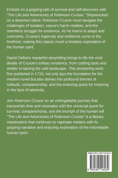The Life and Adventures of Robinson Crusoe is a tale of one man's resilience and resourcefulness in the face of extraordinary challenges. The story begins with Robinson Crusoe's decision to defy his father's wishes and set out to sea. His adventurous spirit leads him through a series of misadventures, including being shipwrecked on a deserted island. Alone on the island, Crusoe must navigate the harsh realities of survival. He learns to secure food, build shelter, and tame the wild environment. The narrative intricately details his ingenious methods for overcoming obstacles, from cultivating crops to domesticating animals. Crusoe's ingenuity and determination become the driving forces that sustain him through years of isolation. The novel also explores Crusoe's emotional and spiritual journey. In solitude, he grapples with existential questions, finds solace in religion, and reflects on the consequences of his past choices. Crusoe's encounters with the island's native inhabitants and his eventual rescue bring further complexity to the narrative, raising questions about cultural differences and the nature of human connection. Robinson Crusoe is not merely an adventure story but a profound exploration of the human condition. It delves into themes of self-discovery, resilience, and the enduring human spirit. Daniel Defoe's vivid and realistic portrayal of Crusoe's experiences has made the novel a timeless classic that continues to captivate readers with its rich narrative and enduring themes.