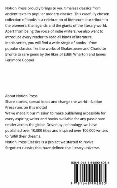 Notion Press proudly brings to you timeless classics from ancient texts to popular modern classics. This carefully chosen collection of books is a celebration of literature, our tribute to the pioneers, the legends and the giants of the literary world. Apart from being the voice of indie writers, we also want to introduce every reader to read all kinds of literature. In this series, you will find a wide range of books-from popular classics like the works of Shakespeare and Charlotte Brontë to rare gems by the likes of Edith Wharton and James Fenimore Cooper.