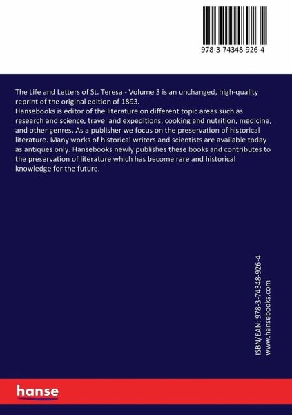 The Life and Letters of St. Teresa - Volume 3 is an unchanged, high-quality reprint of the original edition of 1893.