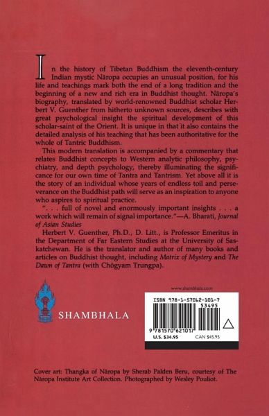In the history of Tibetan Buddhism, the eleventh-century Indian mystic Nâropa occupies an unusual position, for his life and teachings mark both the end of a long tradition and the beginning of a new and rich era in Buddhist thought. Nâropa's biography, translated by the world-renowned Buddhist scholar Herbert V. Guenther from hitherto unknown sources, describes with great psychological insight the spiritual development of this scholar-saint. It is unique in that it also contains a detailed analysis of his teaching that has been authoritative for the whole of Tantric Buddhism. This modern translation is accompanied by a commentary that relates Buddhist concepts to Western analytic philosophy, psychiatry, and depth psychology, thereby illuminating the significance of Tantra and Tantrism for our own time. Yet above all, it is the story of an individual whose years of endless toil and perseverance on the Buddhist path will serve as an inspiration to anyone who aspires to spiritual practice.