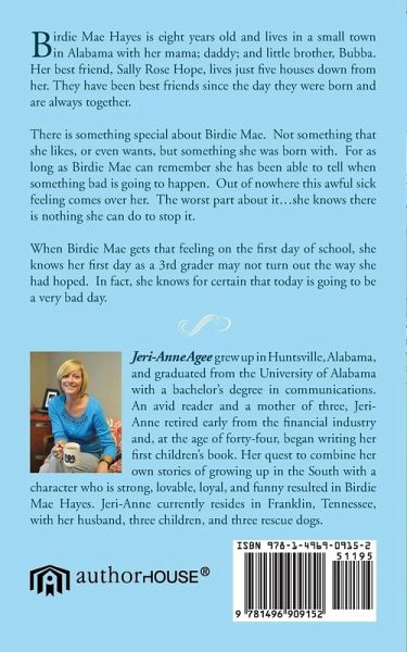 Birdie Mae Hayes is eight years old and lives in a small town in Alabama with her mama; daddy; and little brother, Bubba. Her best friend, Sally Rose Hope, lives just five houses down from her. They have been best friends since the day they were born. Birdie Mae always seems to know when something bad is going to happen. An awful feeling comes over her, and she knows there is nothing she can do about it. The worst part is that awful feeling she gets is never wrong. When Birdie Mae gets that feeling on the first day of school, she knows for sure that her first day as a third-grader isn't going to be good. In fact, she knows it¿s going to be very bad.