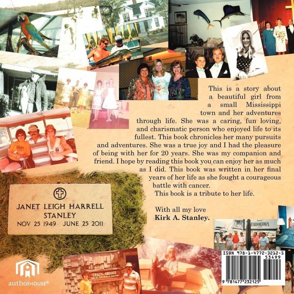 This is a story about a beautiful girl from a small Mississippi town and her adventures through life. She was a caring, fun loving, and charismatic person who enjoyed life to its fullest. This book chronicles her many pursuits and adventures. She was a true joy and I had the pleasure of being with her for 20 years. She was my companion and friend. I hope by reading this book you can enjoy her as much as I did. This book was written in her final years of her life as she fought a courageous battle with cancer. This book is a tribute to her life. With all my love Kirk A. Stanley.