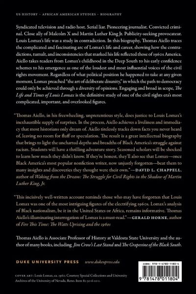 Syndicated television and radio host. Serial liar. Pioneering journalist. Convicted criminal. Close ally of Malcolm X and Martin Luther King Jr. Publicity-seeking provocateur. Louis Lomax's life was a study in contradiction. In this biography, Thomas Aiello traces the complicated and fascinating arc of Lomax's life and career, showing how the contradictions, tumult, and inconsistencies that marked his life reflected those of 1960s America. Aiello takes readers from Lomax's childhood in the Deep South to his early confidence schemes to his emergence as one of the loudest and most influential voices of the civil rights movement. Regardless of what political position he happened to take at any given moment, Lomax preached "the art of deliberate disunity," in which the path to democracy could only be achieved through a diversity of opinions. Engaging and broad in scope, The Life and Times of Louis Lomax is the definitive study of one of the civil rights era's most complicated, important, and overlooked figures.