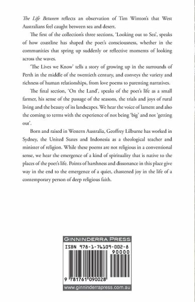 The Life Between reflects an observation of Tim Winton's that West Australians feel caught between sea and desert. The first of the collection's three sections, 'Looking out to Sea', speaks of how coastline has shaped the poet's consciousness, whether in the communities that spring up suddenly or reflective moments of looking across the waves. 'The Lives we Know' tells a story of growing up in the surrounds of Perth in the middle of the twentieth century, and conveys the variety and richness of human relationships, from love poems to parenting narratives. The final section, 'On the Land', speaks of the poet's life as a small farmer, his sense of the passage of the seasons, the trials and joys of rural living and the beauty of its landscapes. We hear the voice of lament and also the coming to terms with the experience of not being 'big' and not 'getting out'.