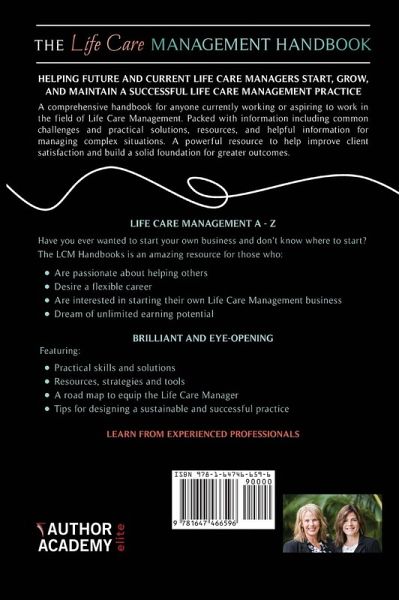 Helping future and current Life Care Managers start, grow, and maintain a successful Life Care Management practice. A comprehensive handbook for anyone currently working or aspiring to work in the field Life Care Management. Packed with information including common challenges and practical solutions, resources, and helpful information for managing complex situations. A powerful resource to help improve client satisfaction and build upon a solid foundation for greater outcomes. Life Care Management A-Z Have you ever wanted to start your own business and don't know where to start? The LCM Handbook is an amazing resource for those who:Are passionate about helping others Desire a flexible career Are interested in starting their own Life Care Management business Dream of unlimited earning potential Brilliant and Eye-Opening! Featuring:Practical skills and solutions Resources, strategies and tools A road map to equip the Life Care Manager Tips for designing a sustainable and successful practice Learn From Experienced Professionals The Life Care Management Institute will provide future training and education to help support Life Care Managers in their practice. https://lcmexpert.com