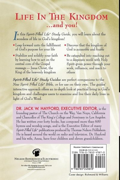 Leap forward into the fulfillment of God's purpose for your life by learning about the kingdom of God and what it means to live in this kingdom! Stabilize and solidify your faith by learning how to act on the central core of the Gospel message - Jesus Christ, the King of the heavenly kingdom. As you discover that the kingdom of God is accessible and livable, you are sure to be catapulted into reaching out to a desperate world with Holy Spirit-given power. Life in the Kingdom is great for individual or group study. Spirit-Filled Life Study Guides are perfect companions to the New Spirit-Filled Life Study Bible, or for use on their own. Each guide offers focused insights into specific issues or principles of Spirit-empowered living. The guides' interactive approach offer an indepth look at practical living in God's kingdom and challengers users to examine and live their daily lives in light of God's Word.