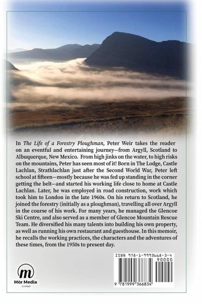 In The Life of a Forestry Ploughman, Peter Weir takes the reader on an eventful and entertaining journey¿from Argyll, Scotland to Albuquerque, New Mexico. From high jinks on the water, to high risks on the mountains, Peter has seen most of it! Born in The Lodge, Castle Lachlan, Strathlachlan just after the Second World War, Peter left school at fifteen¿mostly because he was fed up standing in the corner getting the belt¿and started his working life close to home at Castle Lachlan. Later, he was employed in road construction, work which took him to London in the late 1960s. On his return to Scotland, he joined the forestry (initially as a ploughman), travelling all over Argyll in the course of his work. For many years, he managed the Glencoe Ski Centre, and also served as a member of Glencoe Mountain Rescue Team. He diversified his many talents into building his own property, as well as running his own restaurant and guesthouse. In this memoir, he recalls the working practices, the characters and the adventures of these times, from the 1950s to present day.