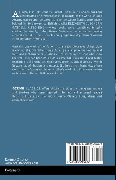 As interest in 19th-century English literature by women has been reinvigorated by a resurgence in popularity of the works of Jane Austen, readers are rediscovering a writer whose fiction, once widely beloved, fell by the wayside. British novelist ELIZABETH CLEGHORN GASKELL (1810-1865)-whose books were sometimes initially credited to, simply, "Mrs. Gaskell"-is now recognized as having created some of the most complex and progressive depictions of women in the literature of the age. Gaskell's one work of nonfiction is this 1857 biography of her close friend, novelist Charlotte Brontë. At once a triumph of the biographical form and a charming celebration of the writer by someone who knew her well, this has been hailed as a remarkably insightful and highly readable life of Brontë, one that makes up for its lack of objectivity with its warmth, admiration, and respect. It offers a significant view of one woman writer's perspective on another's work at a time when women writers were afforded little respect at all.