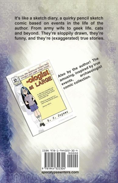 It's like a sketch diary, a quirky pencil sketch comic based on events in the life of the author. From army wife to geek life, cats and beyond. They’re sloppily drawn, they’re funny, and they’re (exaggerated) true stories.