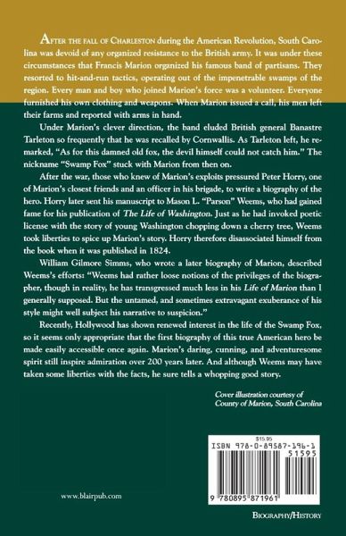 This compelling biography covers the life of patriot Francis "The Swamp Fox" Marion and his role in the American Revolutionary War as a partisan leader against the Tories.