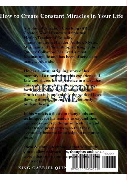 Absolute Realization Coaching (ARC) Creator, World Renowned Spiritual Healer,Teacher of Equality, Transformational Leader, Author, Mystic, Musician and Philanthropist, King Gabriel Quincy Collymore has lived a most fascinating life and has been of service to many worldwide. He has a most intriguing story of his memory of a time before this experience of Life and shares his experience in a way that cuts right through the illusion and brings forth such splendorous and wonderful Truth that it is undeniably the work of Love flowing directly through this gloriously brilliant being. In his work is a focus on many tools and techniques for his readers to expand their awareness and see things in fresh new and heightened perspectives, so that they eventually become knowledge in its purest form.