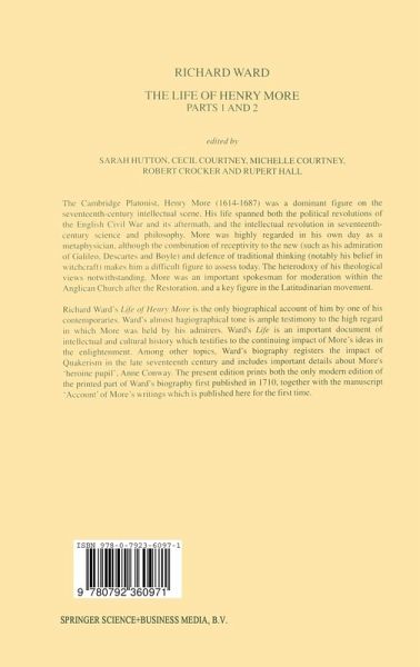 Richard Ward's Life of Henry More is the only biographical account of him by one of his contemporaries. Ward's almost hagiographical tone is ample testimony to the high regard in which More was held by his admirers. Ward's Life is an important document of intellectual and cultural history which testifies to the continuing impact of More's ideas in the Enlightenment. Among other topics, Ward's biography registers the impact of Quakerism in the late seventeenth century and includes important details about More's `heroine pupil', Anne Conway. The present edition prints both the only modern edition of the printed part of Ward's Account first published in 1710, together with the manuscript Account of More's writings which is published here for the first time.
